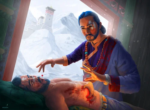 Illustrations exploring a mountain top civilisation from a world building project